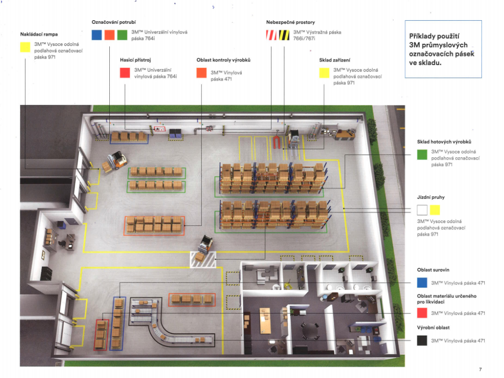Taśma winylowa 3M™ Vinyl Tape 471 charakteryzuje się wysoką odpornością na ścieranie. Taśma ta doskonale nadaje się do znakowania i kodowania pasów i linii, ponieważ zachowuje swój kolor pod wpływem ścierania, zużycia i rozpuszczalników. Te właściwości, w połączeniu z łatwym usuwaniem, sprawiają, że taśma winylowa 3M™ Vinyl Tape 471 jest szybszą, bardziej wszechstronną i tańszą opcją niż powlekanie farbą. Używanie taśmy do oznaczania linii podziału zamiast farby oznacza również, że nie ma potrzeby wentylacji w celu usunięcia rozpuszczalników odparowanych z farby. Ponieważ taśma winylowa 3M™ Vinyl Tape 471 ma niską zawartość wypłukiwanych halogenów i siarki, może być bardzo dobrze wykorzystywana w zastosowaniach wrażliwych na korozję, takich jak przemysł jądrowy i produkcja stali nierdzewnej.