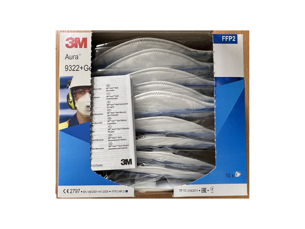 9322+Gen3, Półmaska filtrująca Aura Gen3, FFP2, z zaworem, pakowana w kartonik po 10 szt.